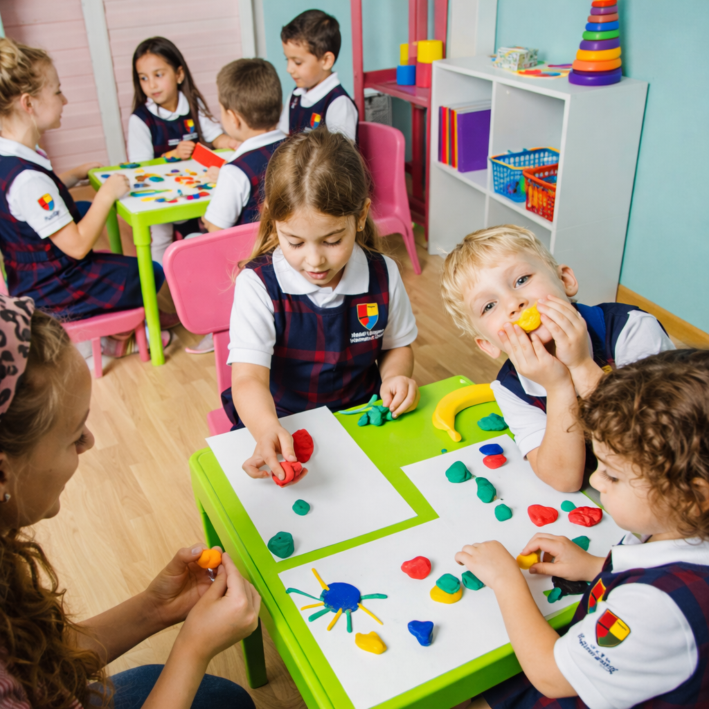The curriculum focuses on basic skills like counting, the alphabet, and social interaction, emphasizing play-based learning to develop cognitive, emotional, and social skills in a nurturing and supportive atmosphere. Teachers in a kindergarten are often warm and attentive, guiding children through structured routines while allowing plenty of times.